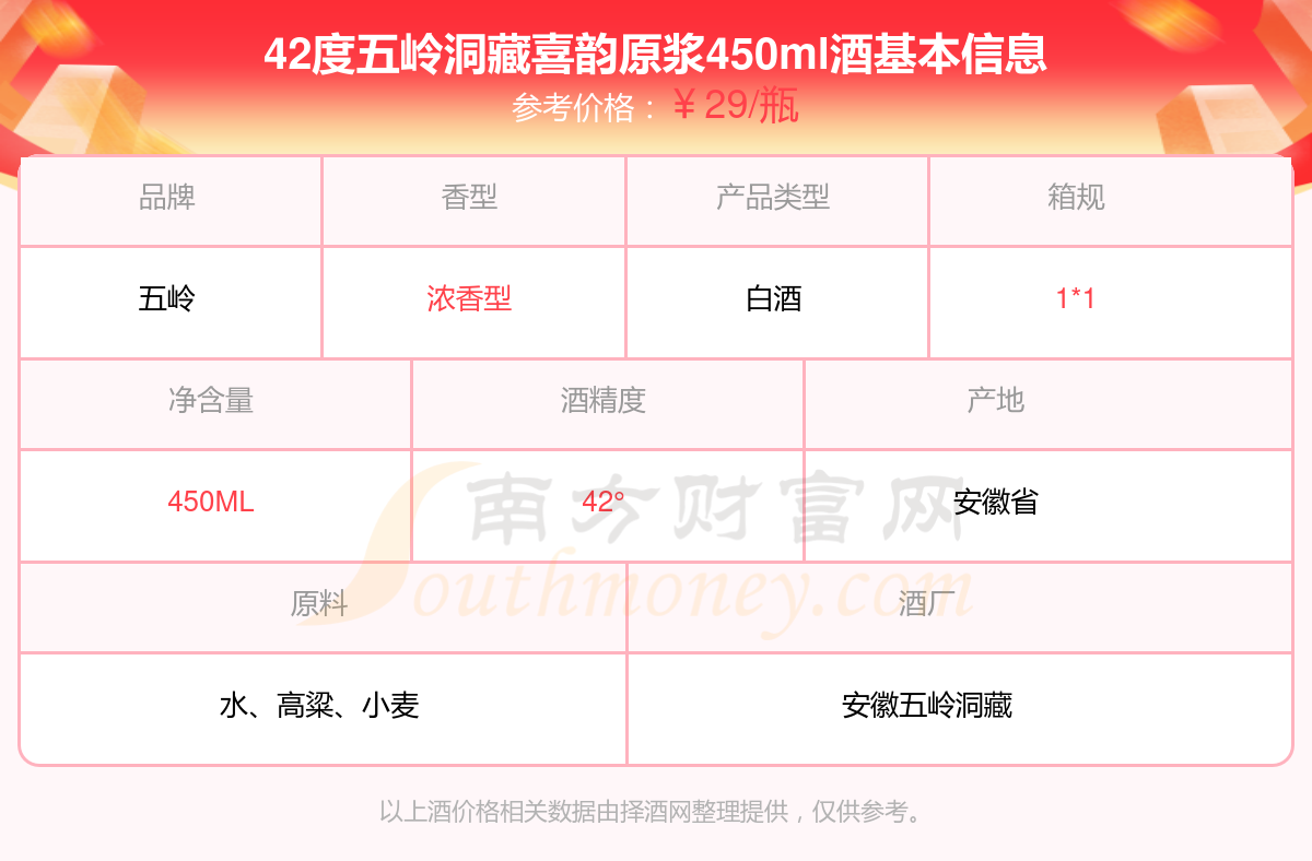 42度五嶺洞藏喜韻原漿450ml基本信息