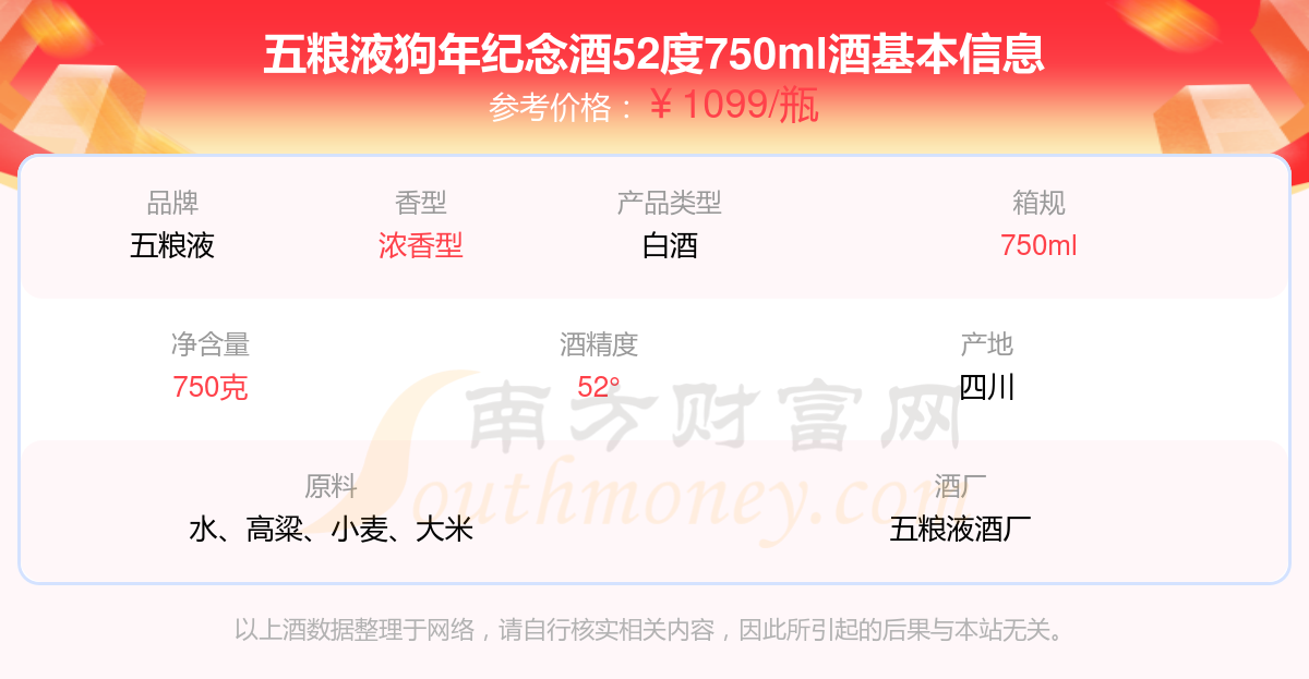五糧液狗年紀(jì)念酒52度750ml基本信息