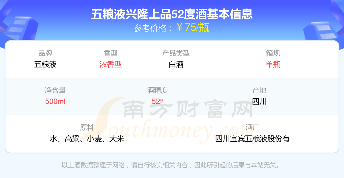 五糧液興隆上品52度基本信息