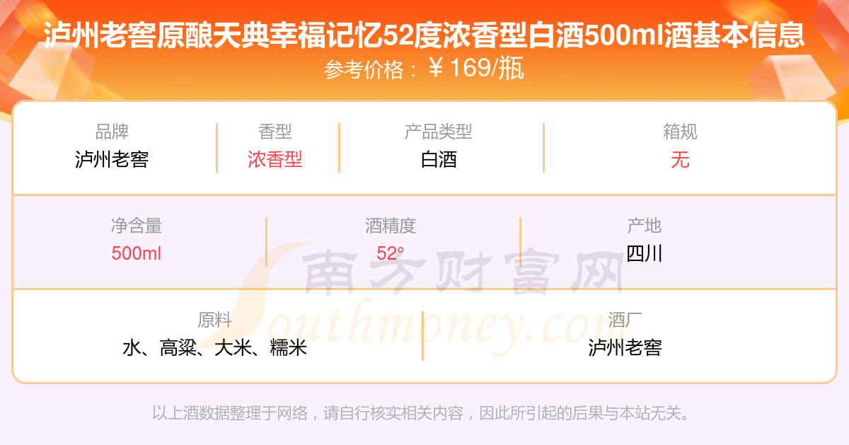 瀘州老窖原釀天典幸福記憶52度濃香型白酒500ml基本信息