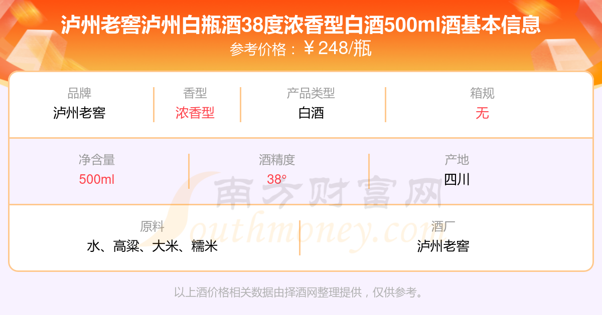 瀘州老窖瀘州白瓶酒38度濃香型白酒500ml基本信息