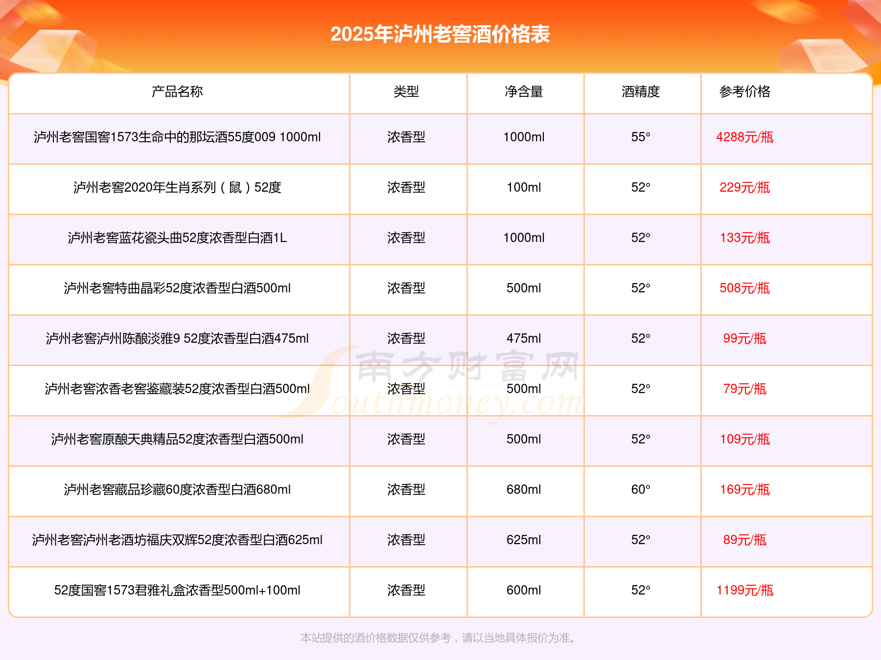 同品牌其他酒價(jià)格表