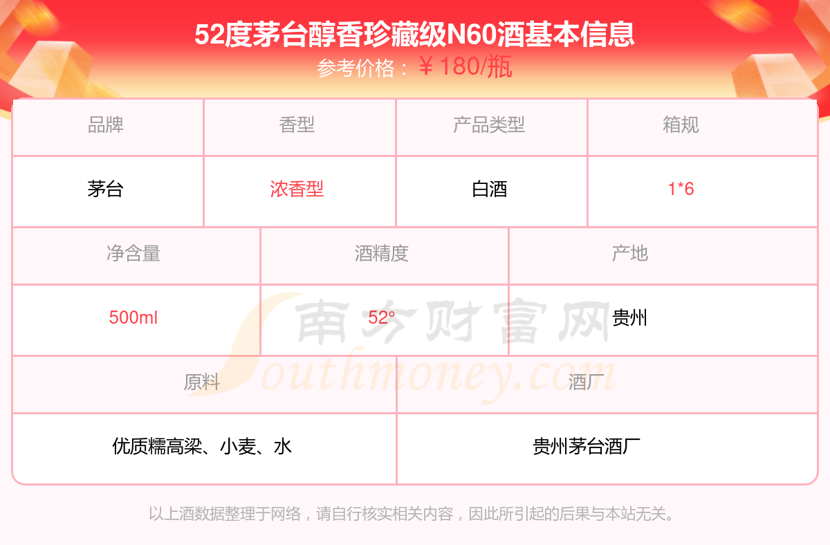 52度茅臺(tái)醇香珍藏級(jí)N60基本信息