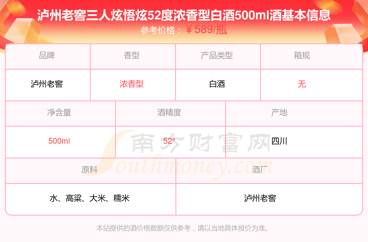瀘州老窖三人炫悟炫52度濃香型白酒500ml基本信息