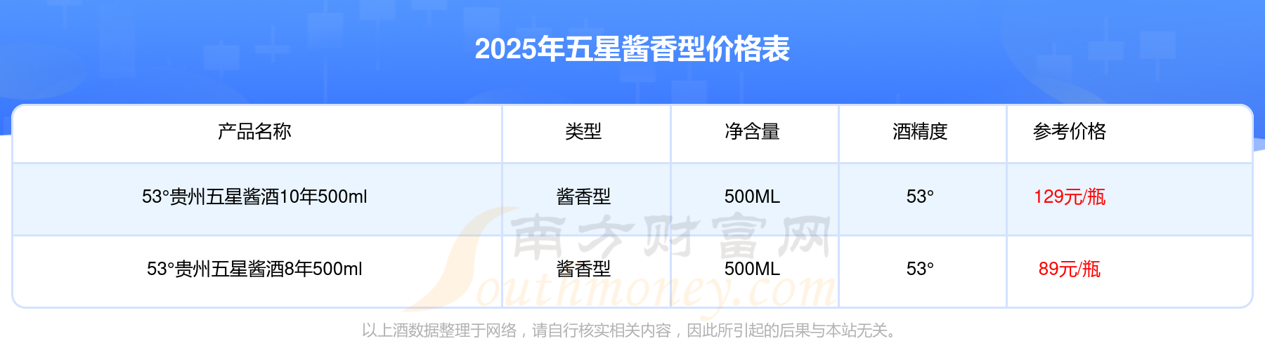五星醬香型酒最新價(jià)格2025: