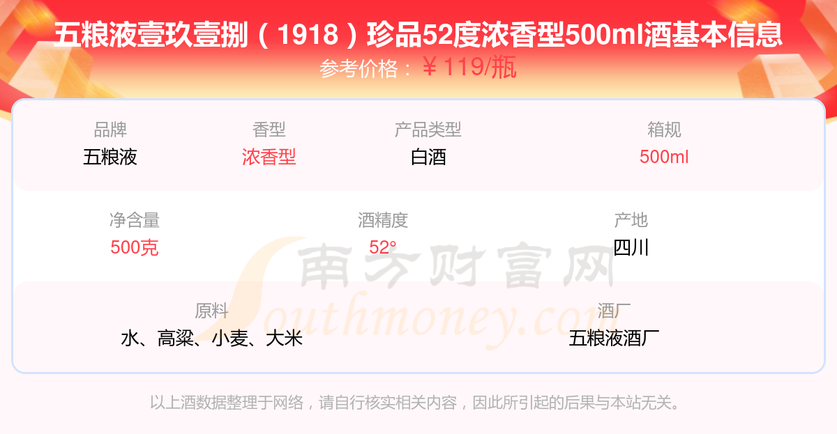 五糧液壹玖壹捌(1918)珍品52度濃香型500ml基本信息