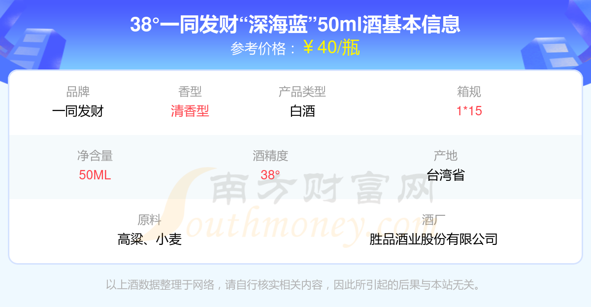 38°一同發(fā)財“深海藍(lán)”50ml基本信息
