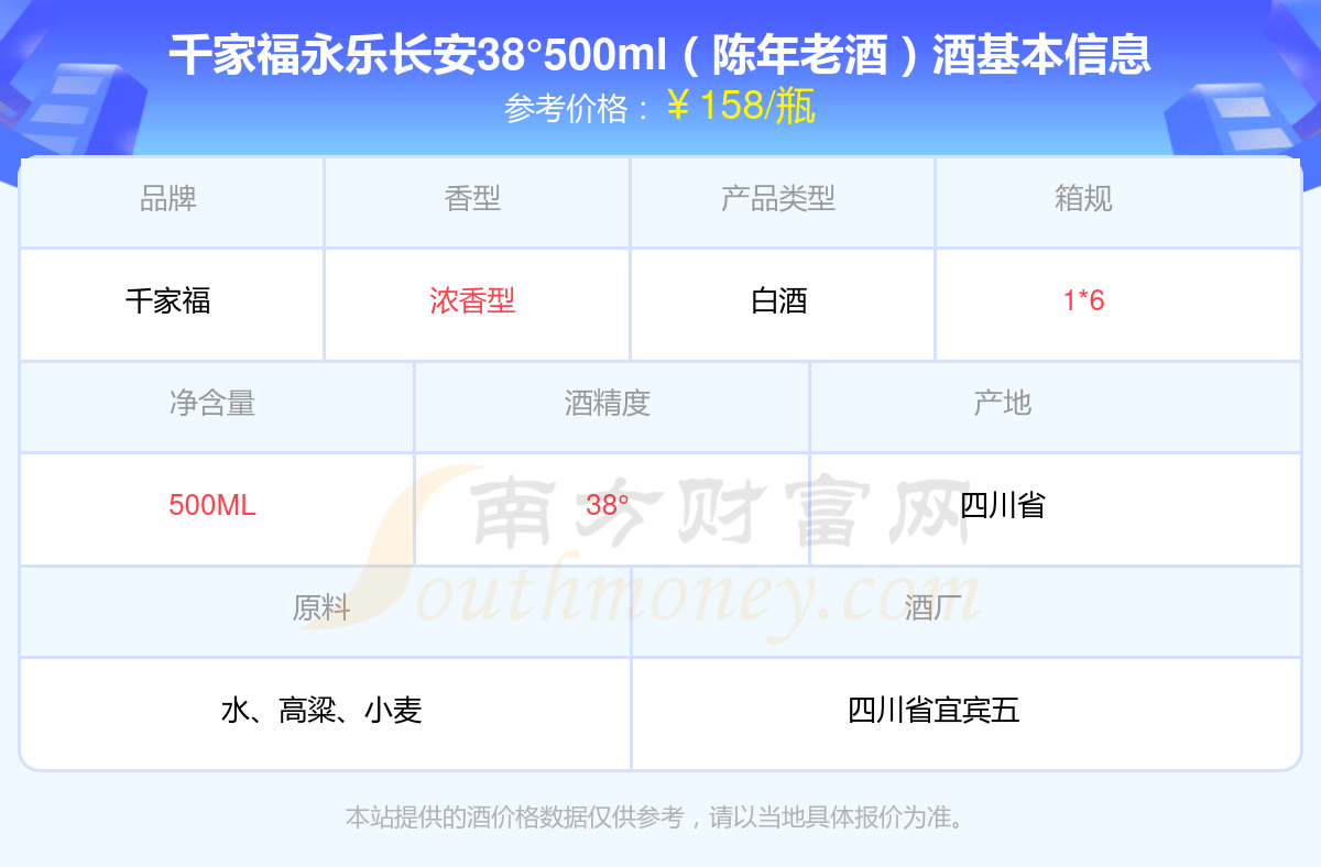 千家福永樂長安38°500ml(陳年老酒)基本信息