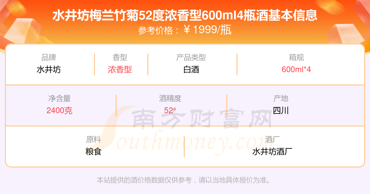 水井坊梅蘭竹菊52度濃香型600ml4瓶基本信息
