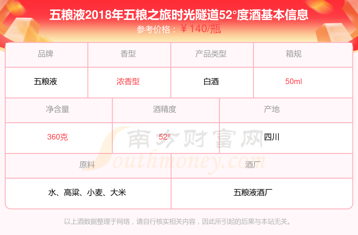 五糧液2018年五糧之旅時(shí)光隧道52°度基本信息