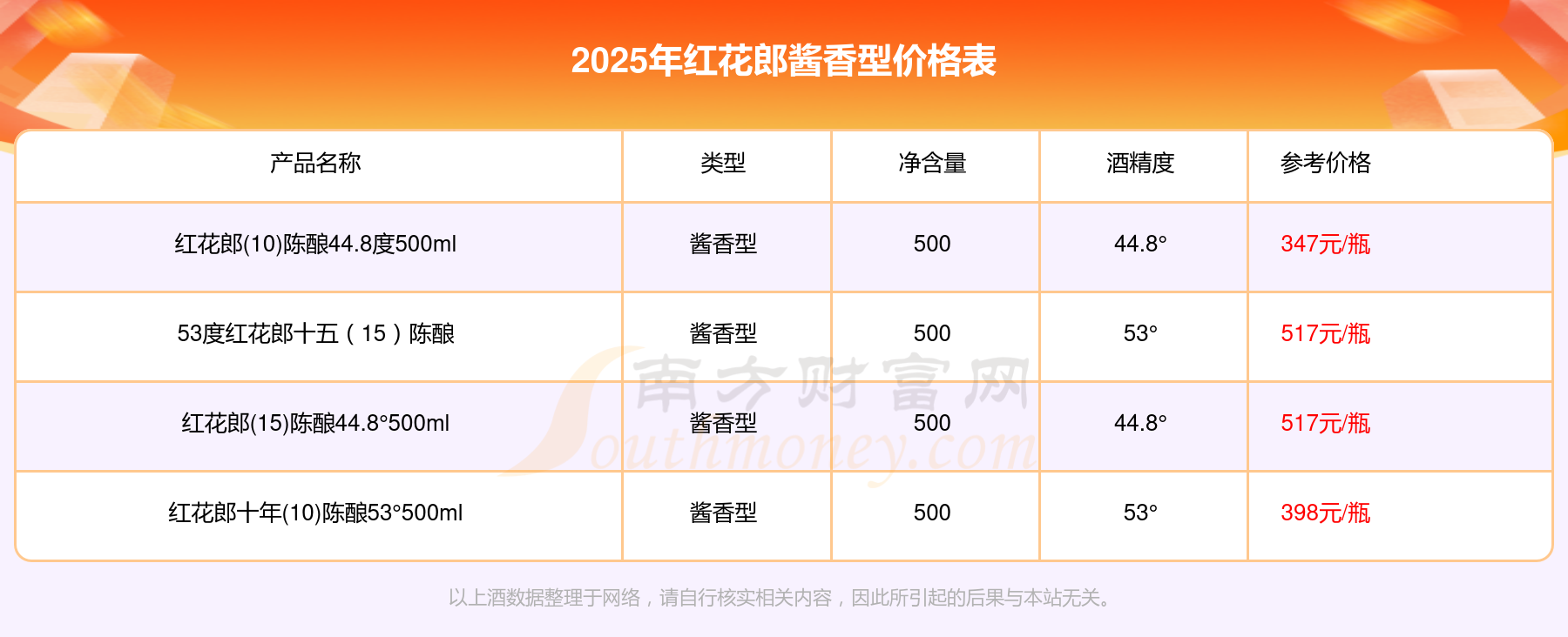 2025紅花郎醬香型酒最新價(jià)格: