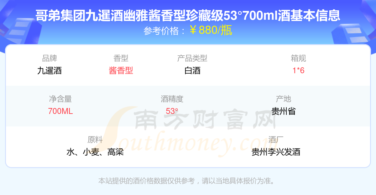 哥弟集團(tuán)九暹酒幽雅醬香型珍藏級(jí)53°700ml基本信息