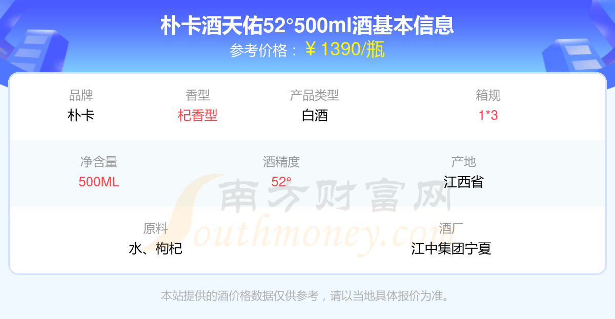 樸卡酒天佑52°500ml基本信息