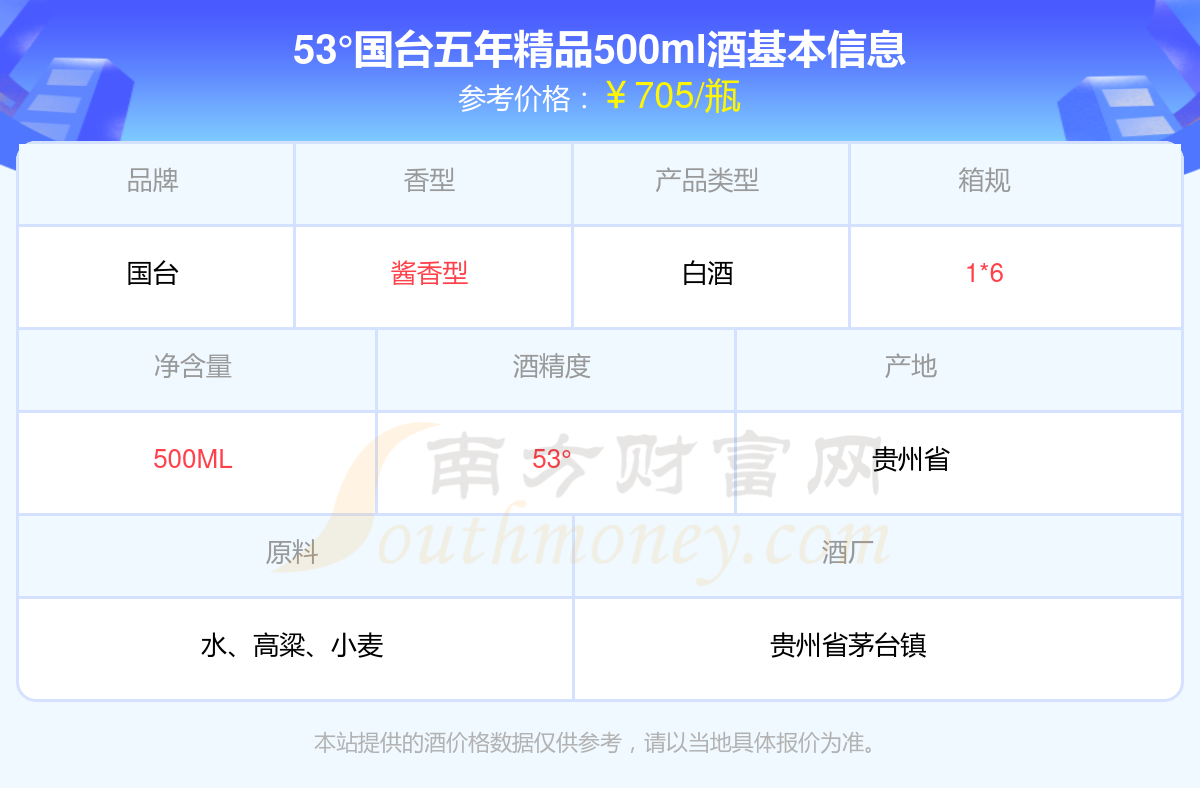 53°國臺五年精品500ml基本信息