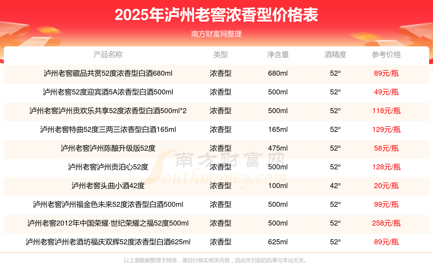 瀘州老窖濃香型酒最新價格2025: