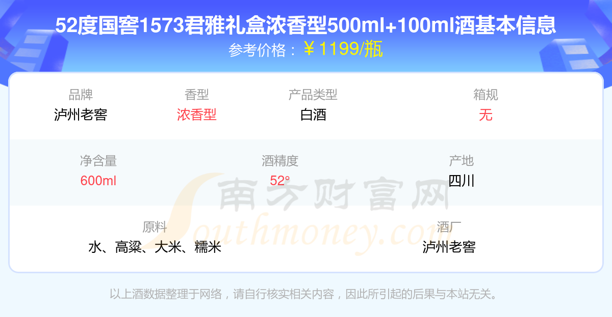 52度國窖1573君雅禮盒濃香型500ml+100ml基本信息