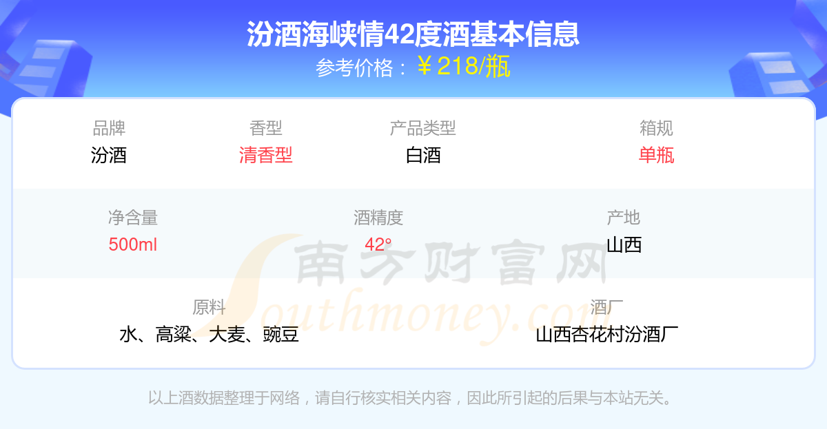 汾酒海峽情42度基本信息