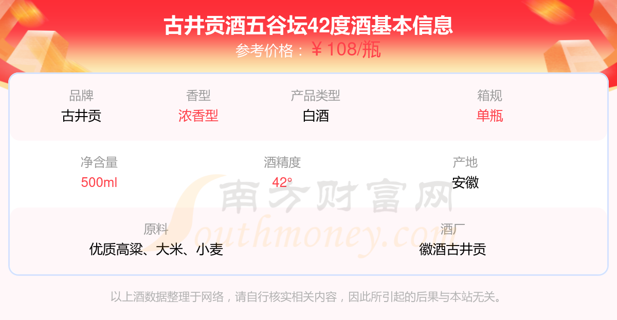 古井貢酒五谷壇42度基本信息
