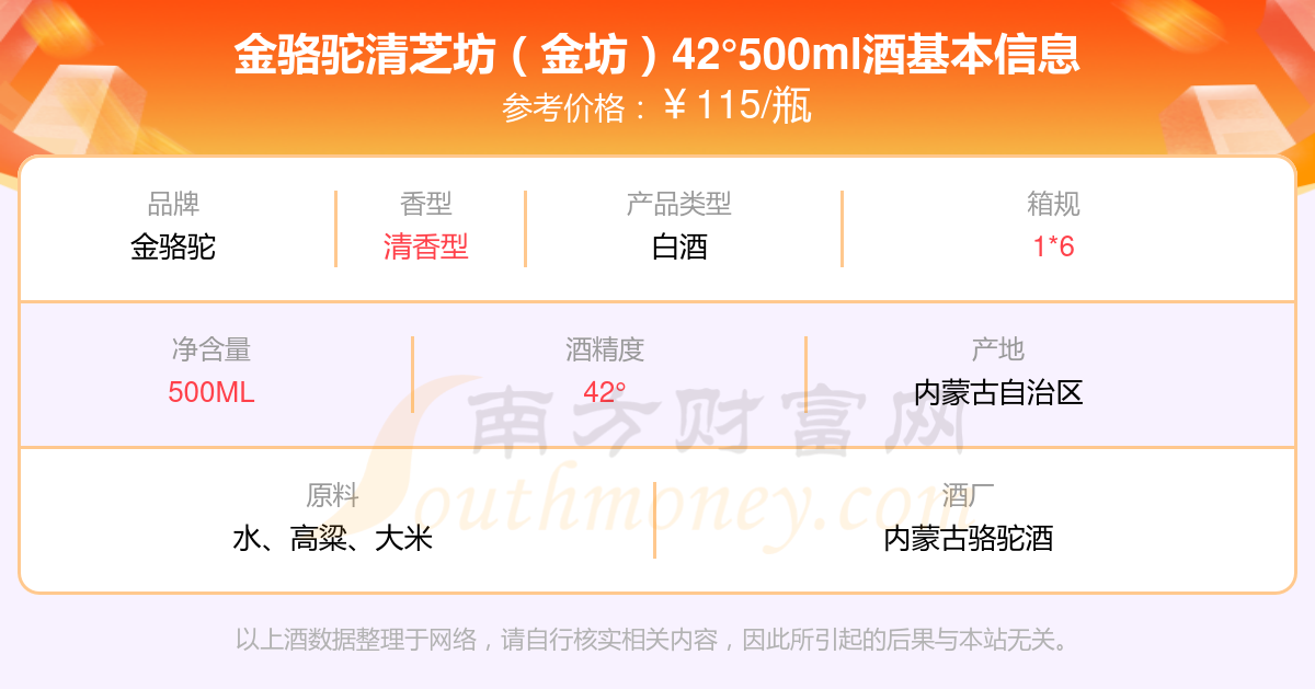 金駱駝清芝坊(金坊)42°500ml基本信息