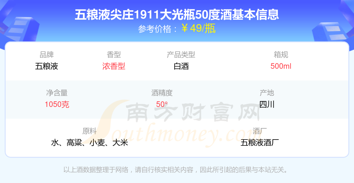 五糧液尖莊1911大光瓶50度酒基本信息