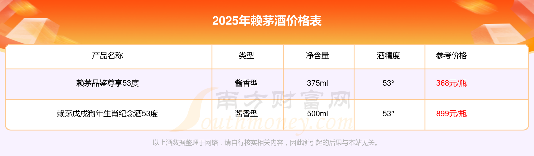 2025賴茅酒最新價格: