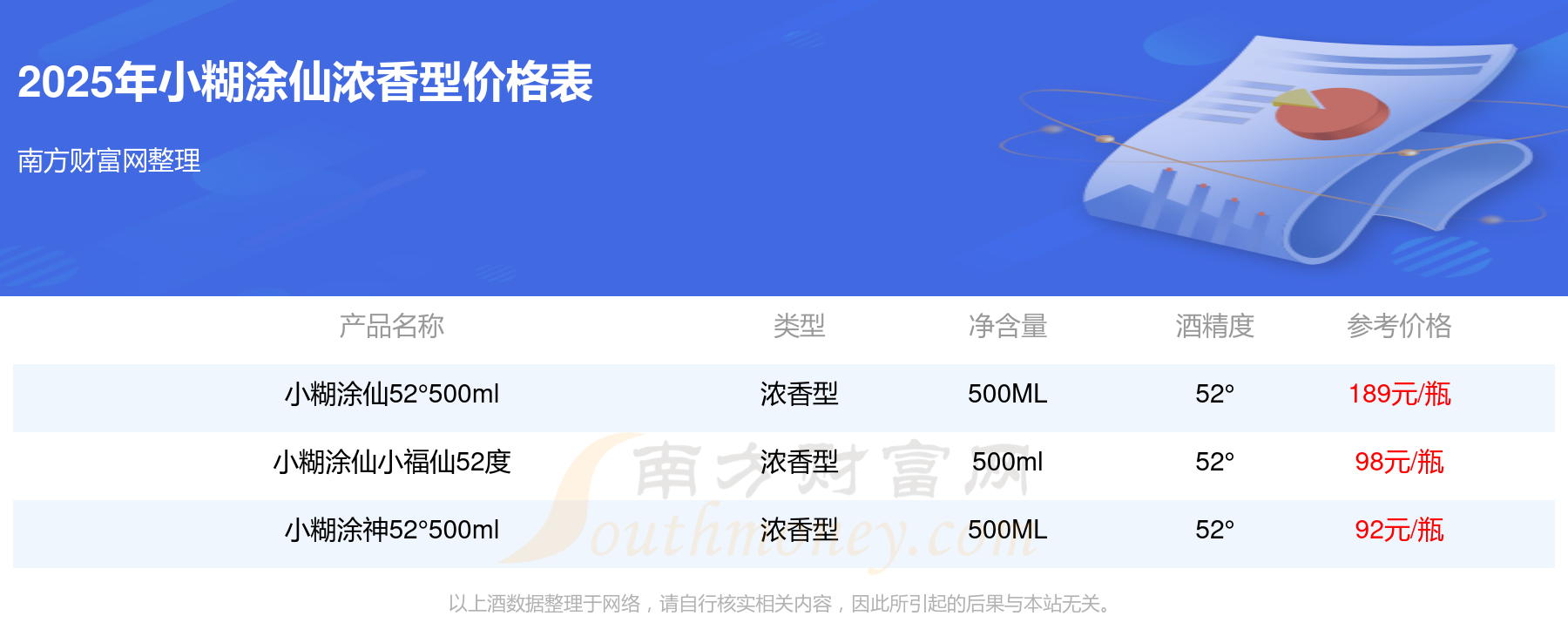 小糊涂仙52°500ml參考價189元/瓶、小糊涂仙小福仙52度參考價98元/瓶、小糊涂神52°500ml參考價92元/瓶。