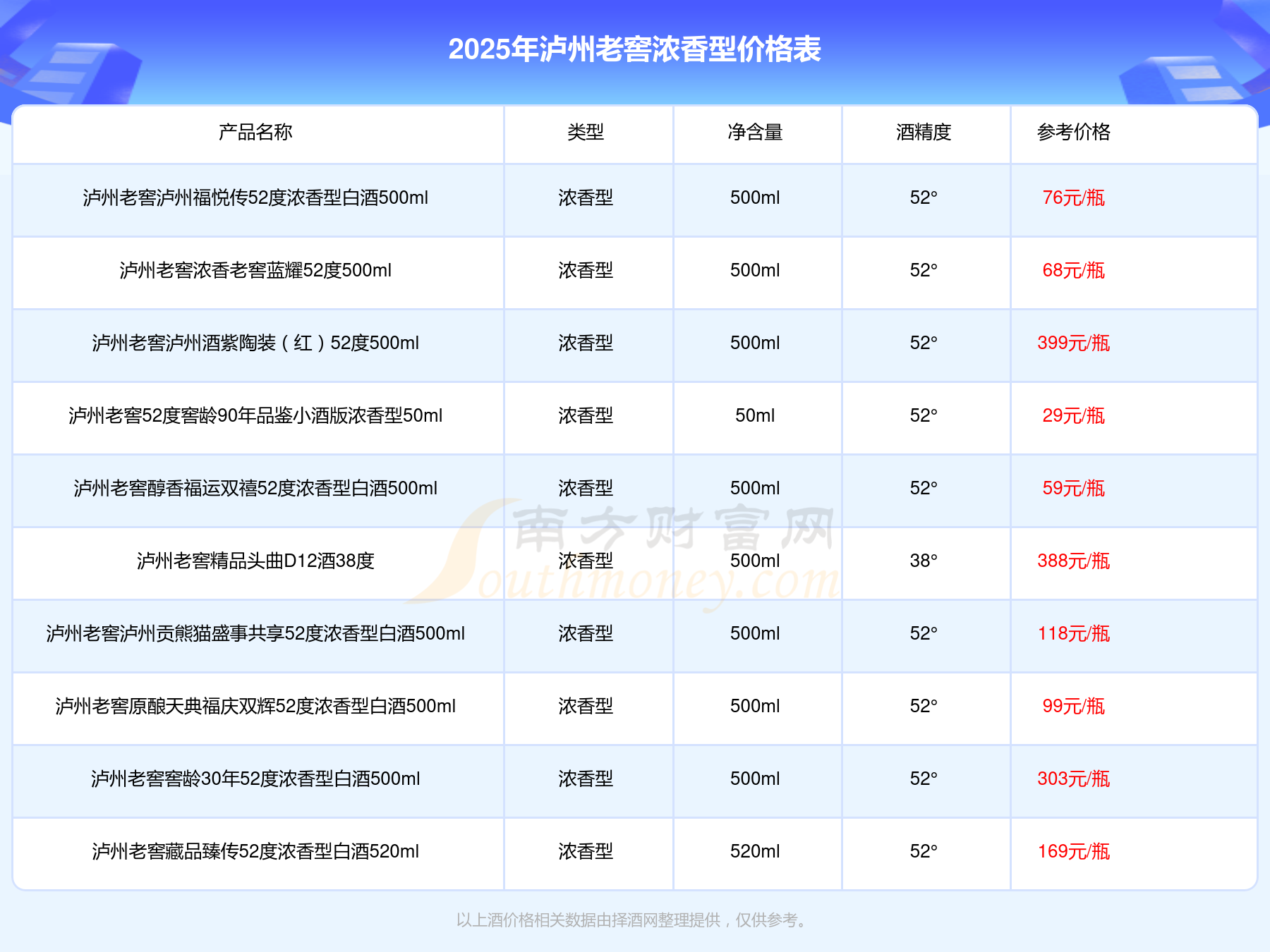 2025瀘州老窖濃香型酒最新價(jià)格:瀘州老窖國窖1573春釀鼠兆豐年E 55度參考價(jià)17999元/瓶、瀘州老窖國窖1573生命中的那壇酒55度014參考價(jià)9999元/瓶、瀘州老窖國窖1573春釀鼠兆豐年A 55度參考價(jià)5088元/瓶。