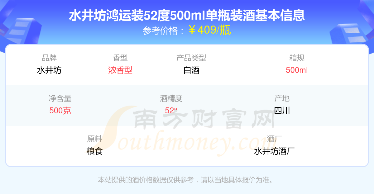 水井坊鴻運(yùn)裝52度500ml單瓶裝基本信息