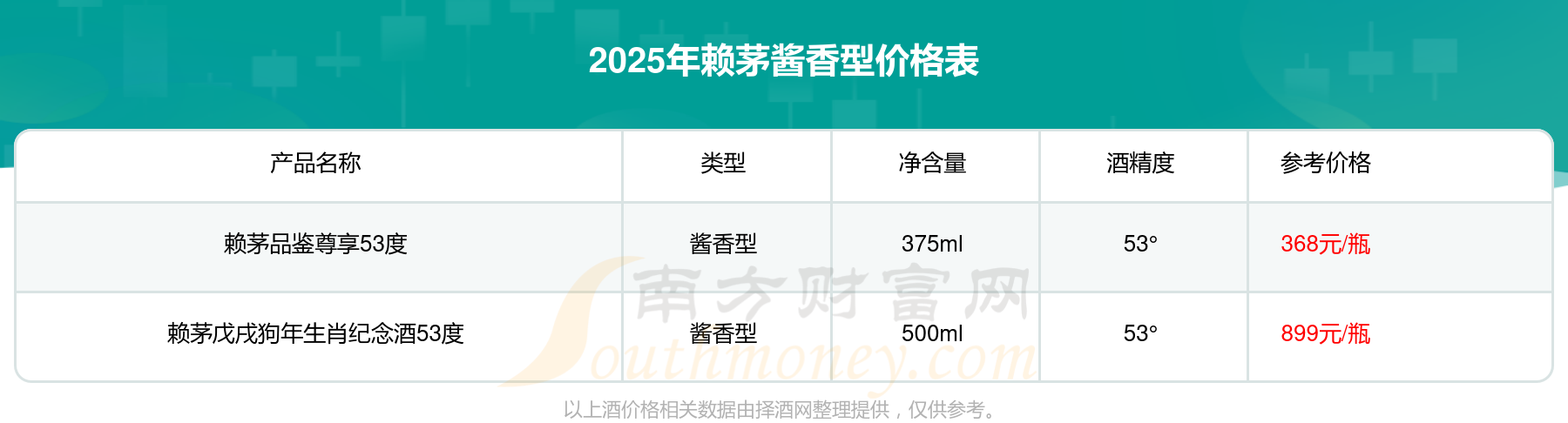 賴茅戊戌狗年生肖紀念酒53度參考價899元/瓶、賴茅品鑒尊享53度參考價368元/瓶。