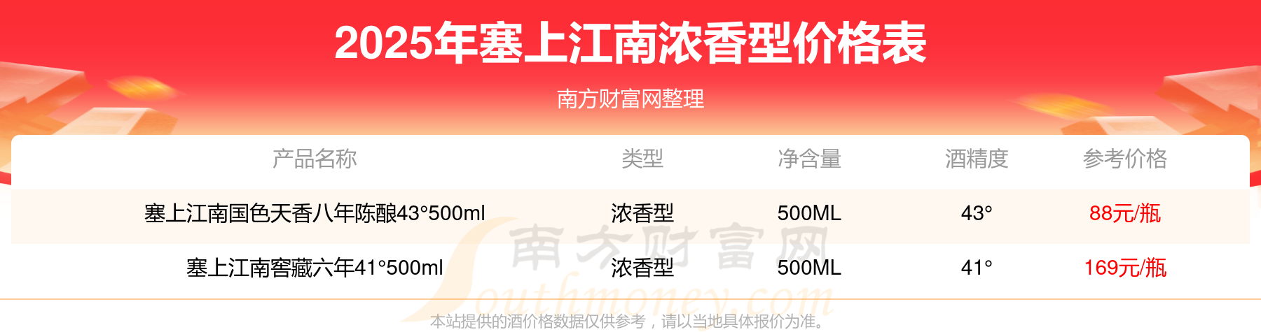 塞上江南窖藏六年41°500ml參考價(jià)169元/瓶、塞上江南國(guó)色天香八年陳釀43°500ml參考價(jià)88元/瓶。