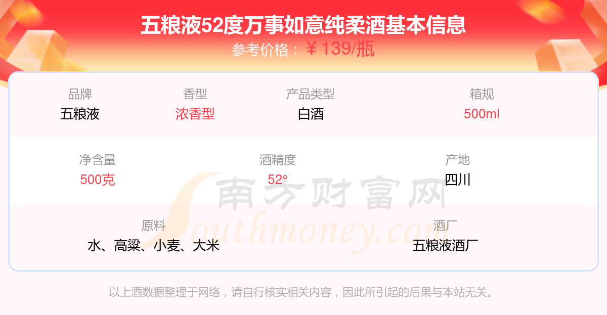 五糧液52度萬事如意純?nèi)峄拘畔?/strong>