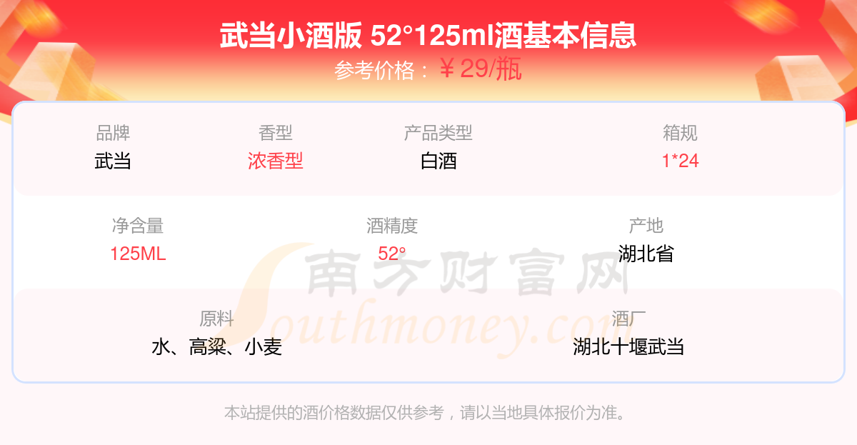 武當(dāng)小酒版 52°125ml基本信息