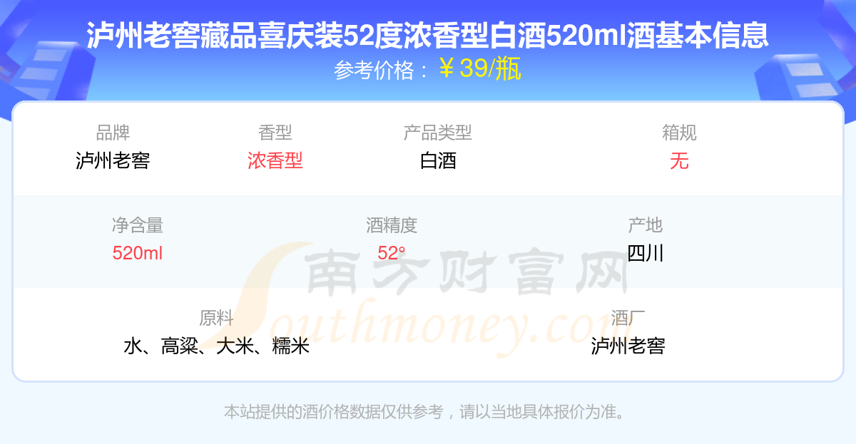 瀘州老窖藏品喜慶裝52度濃香型白酒520ml基本信息