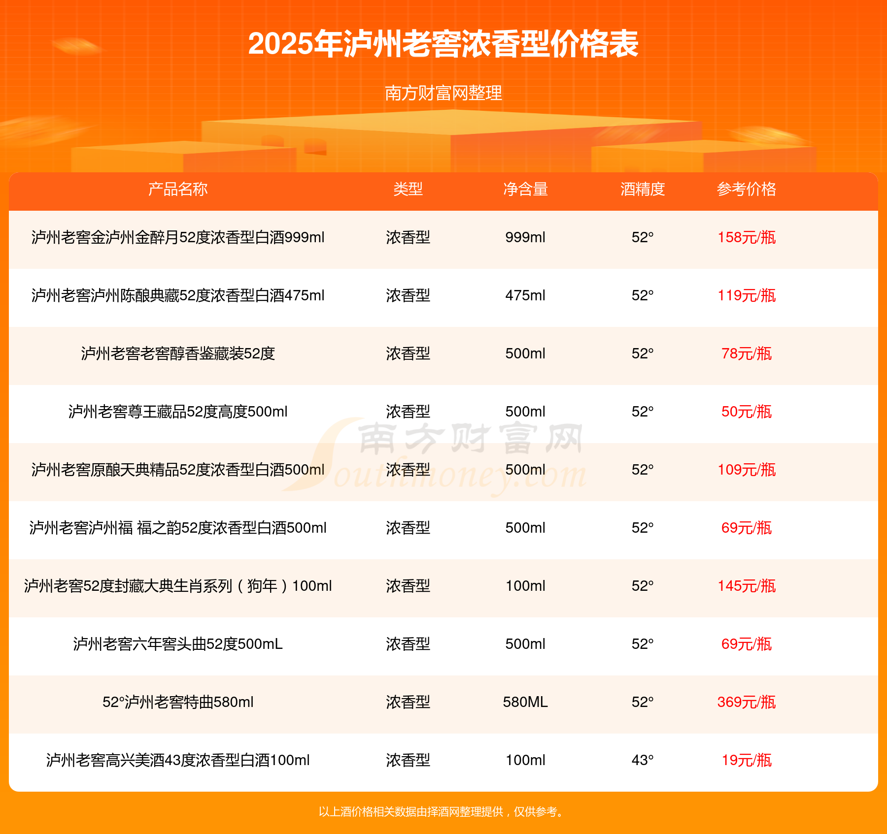 2025瀘州老窖濃香型酒最新價(jià)格: