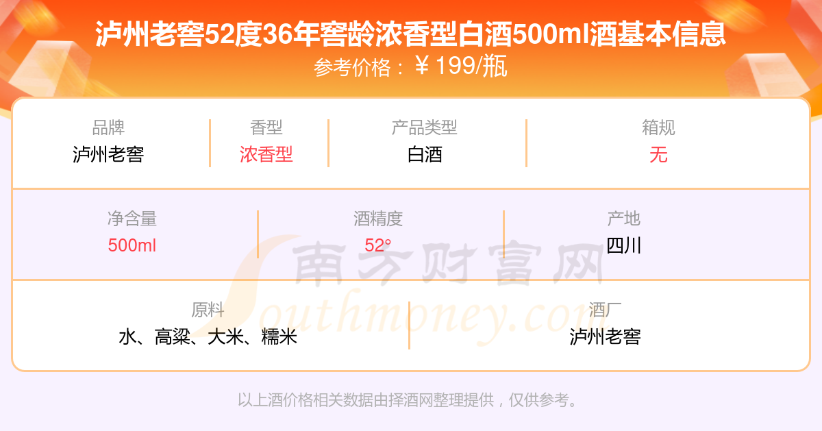 瀘州老窖52度36年窖齡濃香型白酒500ml基本信息