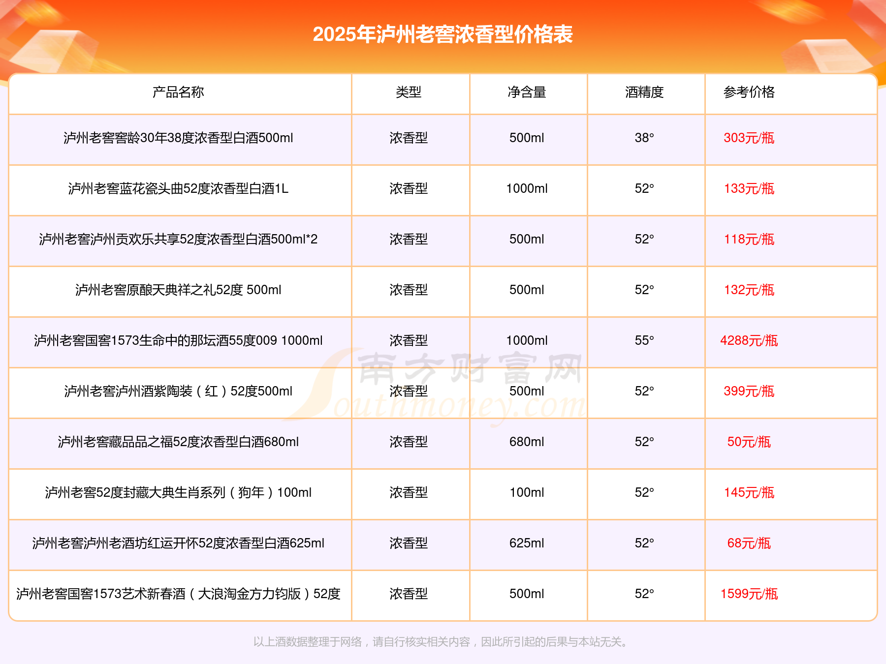 2025瀘州老窖濃香型酒最新價(jià)格:
