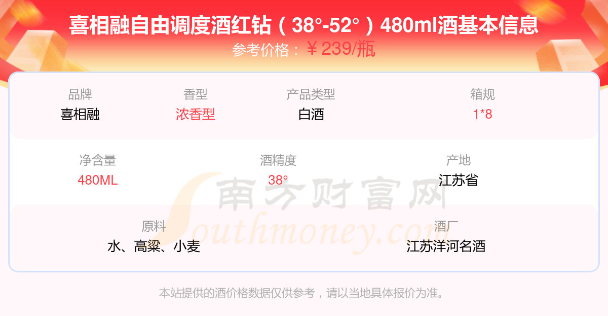 喜相融自由調(diào)度酒紅鉆(38°-52°)480ml基本信息