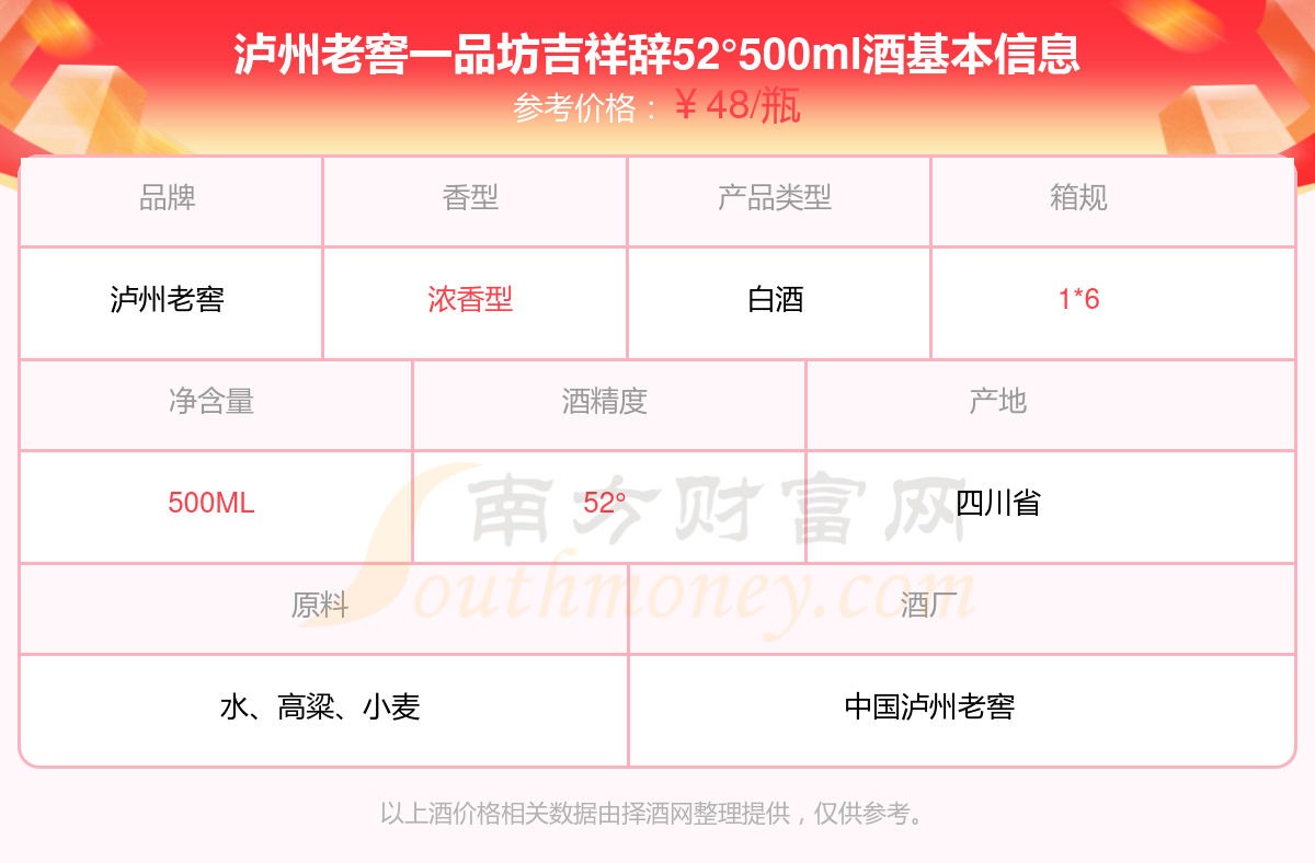 瀘州老窖一品坊吉祥辭52°500ml基本信息