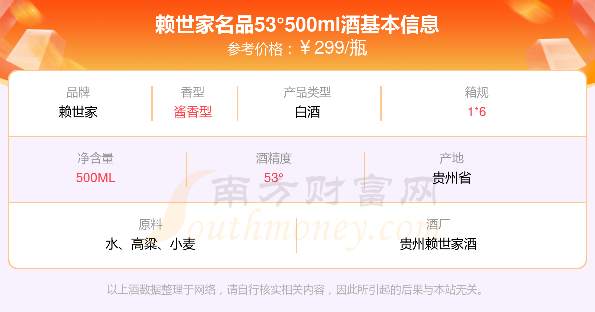 賴世家名品53°500ml基本信息