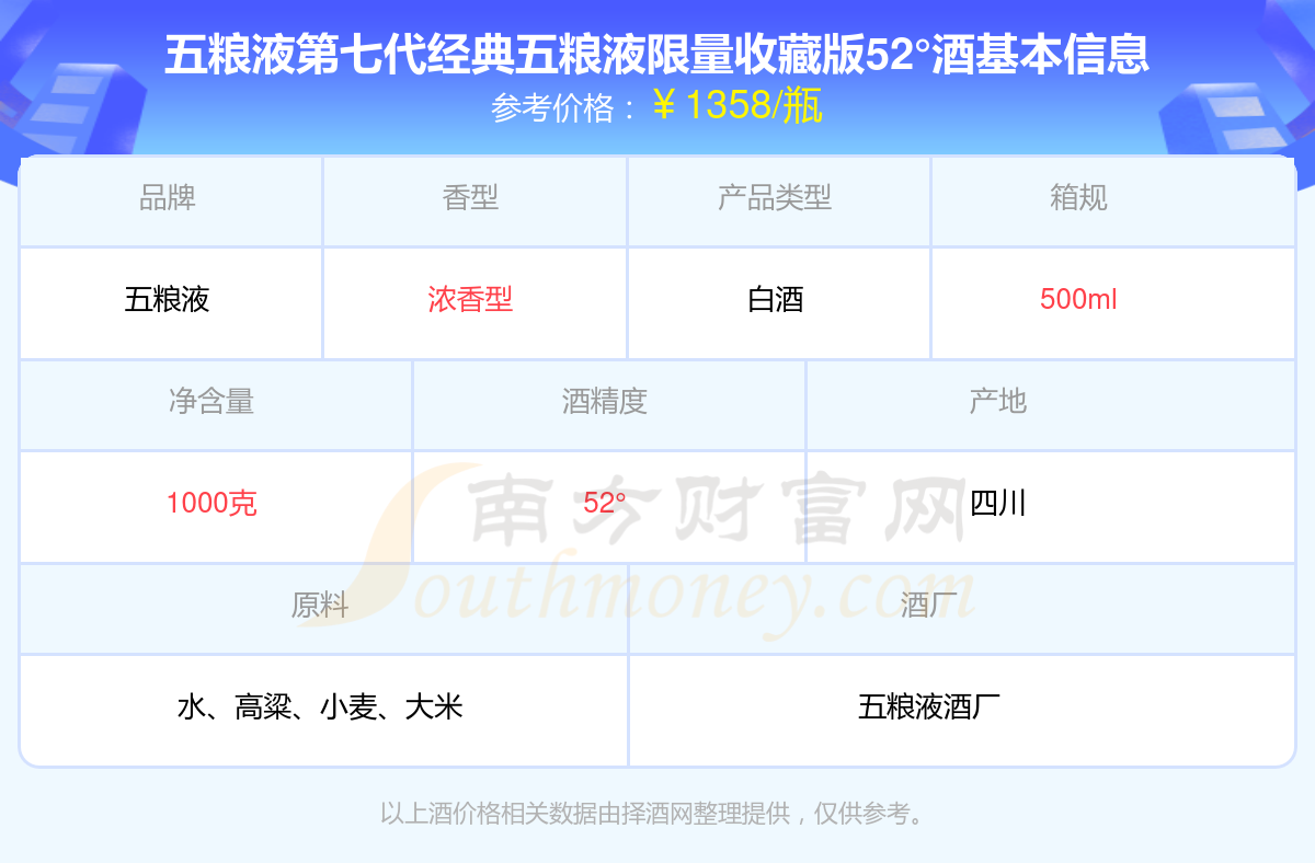 五糧液第七代經(jīng)典五糧液限量收藏版52°基本信息