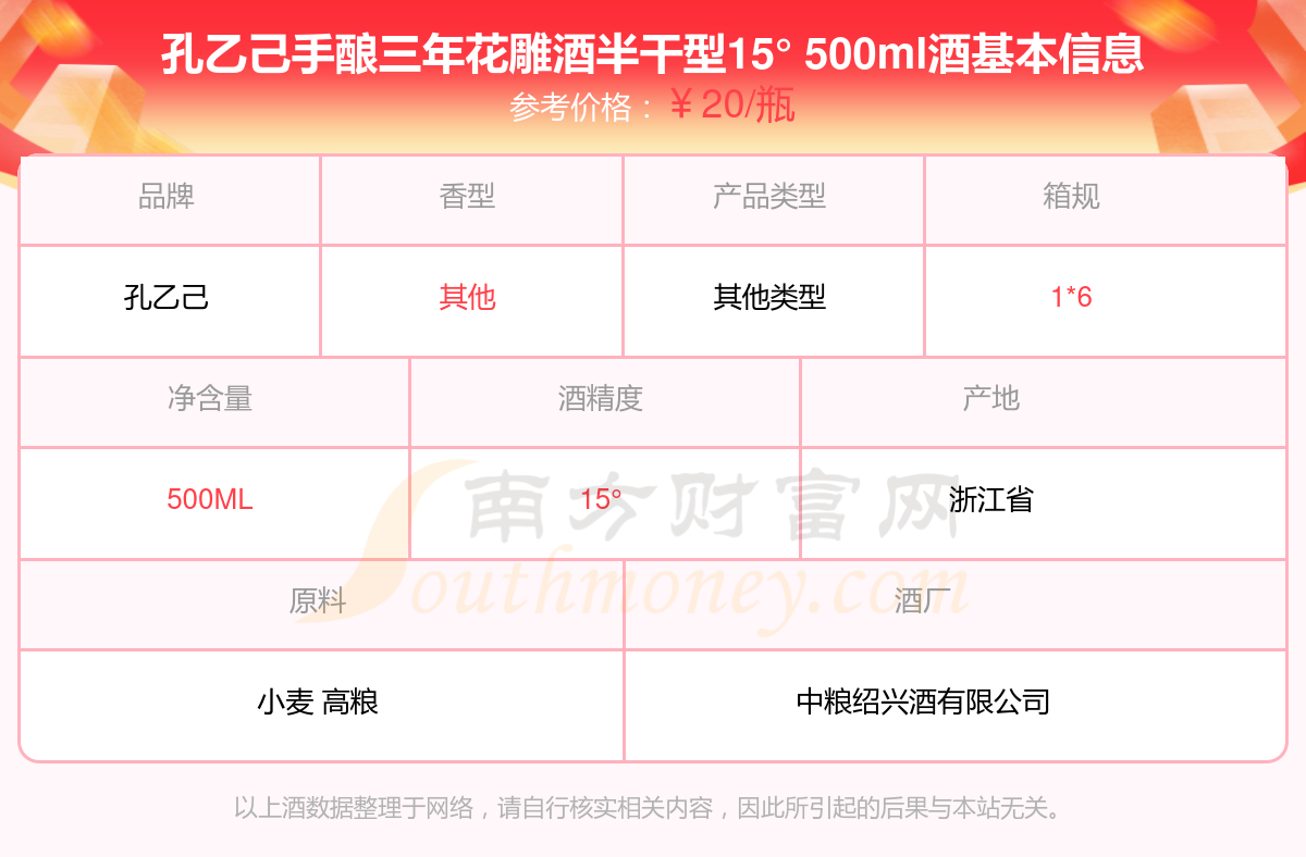孔乙己手釀三年花雕酒半干型15° 500ml基本信息