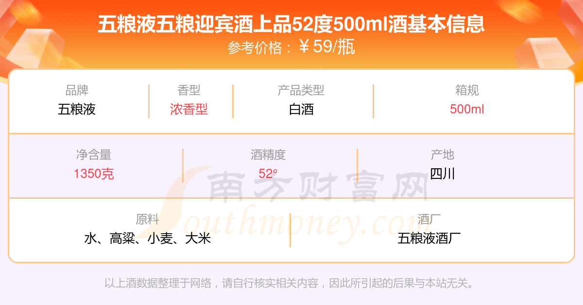 五糧液五糧迎賓酒上品52度500ml基本信息