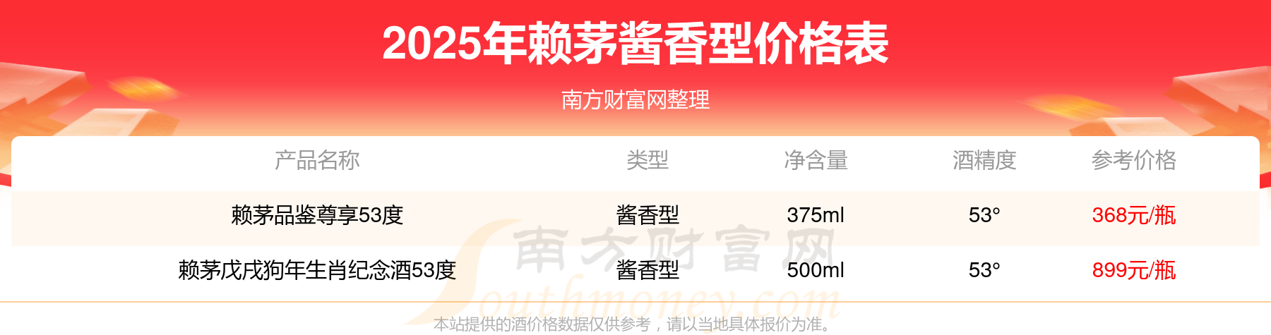 賴茅戊戌狗年生肖紀(jì)念酒53度參考價(jià)899元/瓶、賴茅品鑒尊享53度參考價(jià)368元/瓶。