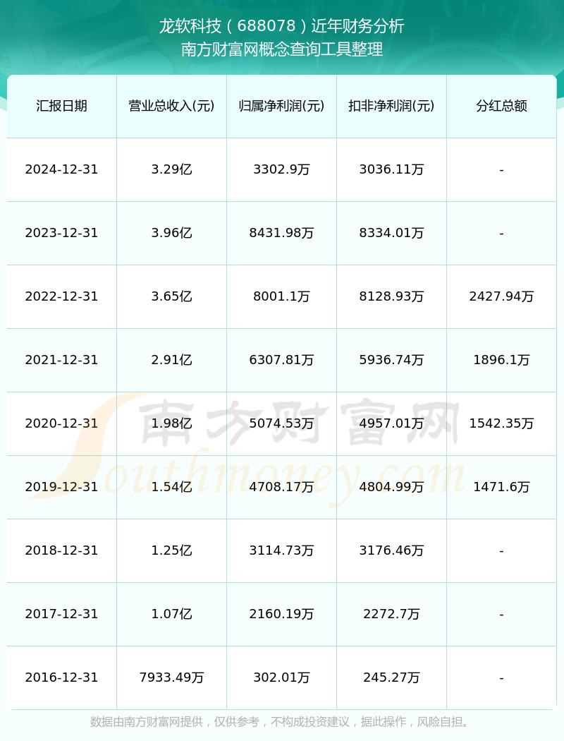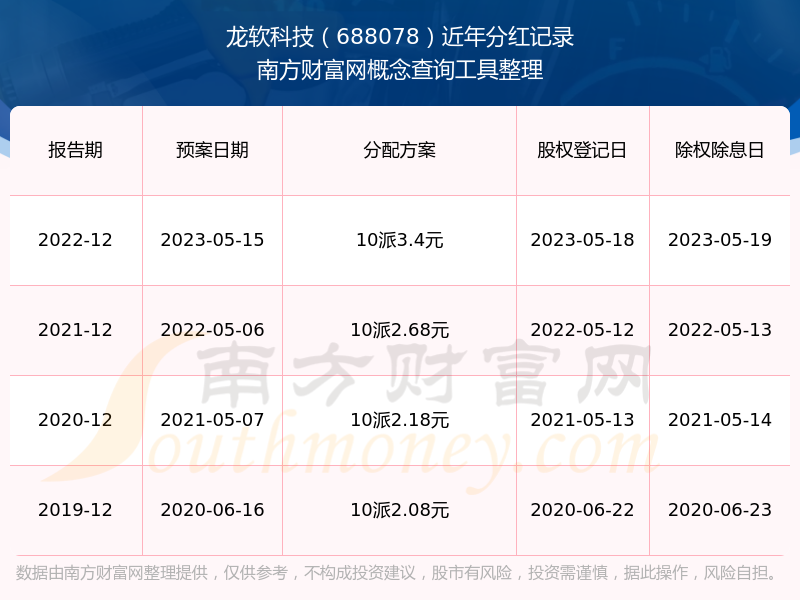 近年龍軟科技分紅派息情況如下表所示:
