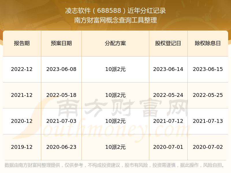 凌志軟件最新一次公布的分紅方案:10派2元。