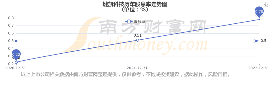 鍵凱科技?xì)v年股息率走勢(shì)如下圖: