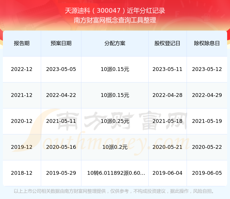 天源迪科最新一次公布的分紅方案為10派0.15元。本次權(quán)益分派股權(quán)登記日為2023年5月11日,除權(quán)除息日為2023年5月12日,派息日為2023年5月12日。