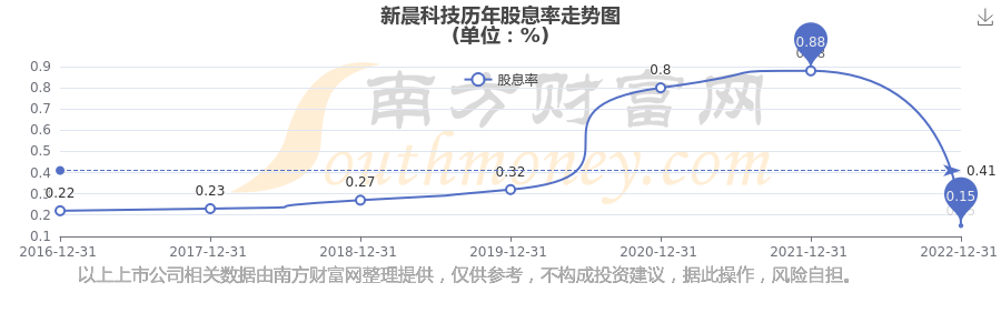 新晨科技最新一次公布的分紅方案為10派0.2元。本次權(quán)益分派股權(quán)登記日為2023年6月13日,除權(quán)除息日為2023年6月14日,派息日為2023年6月14日。