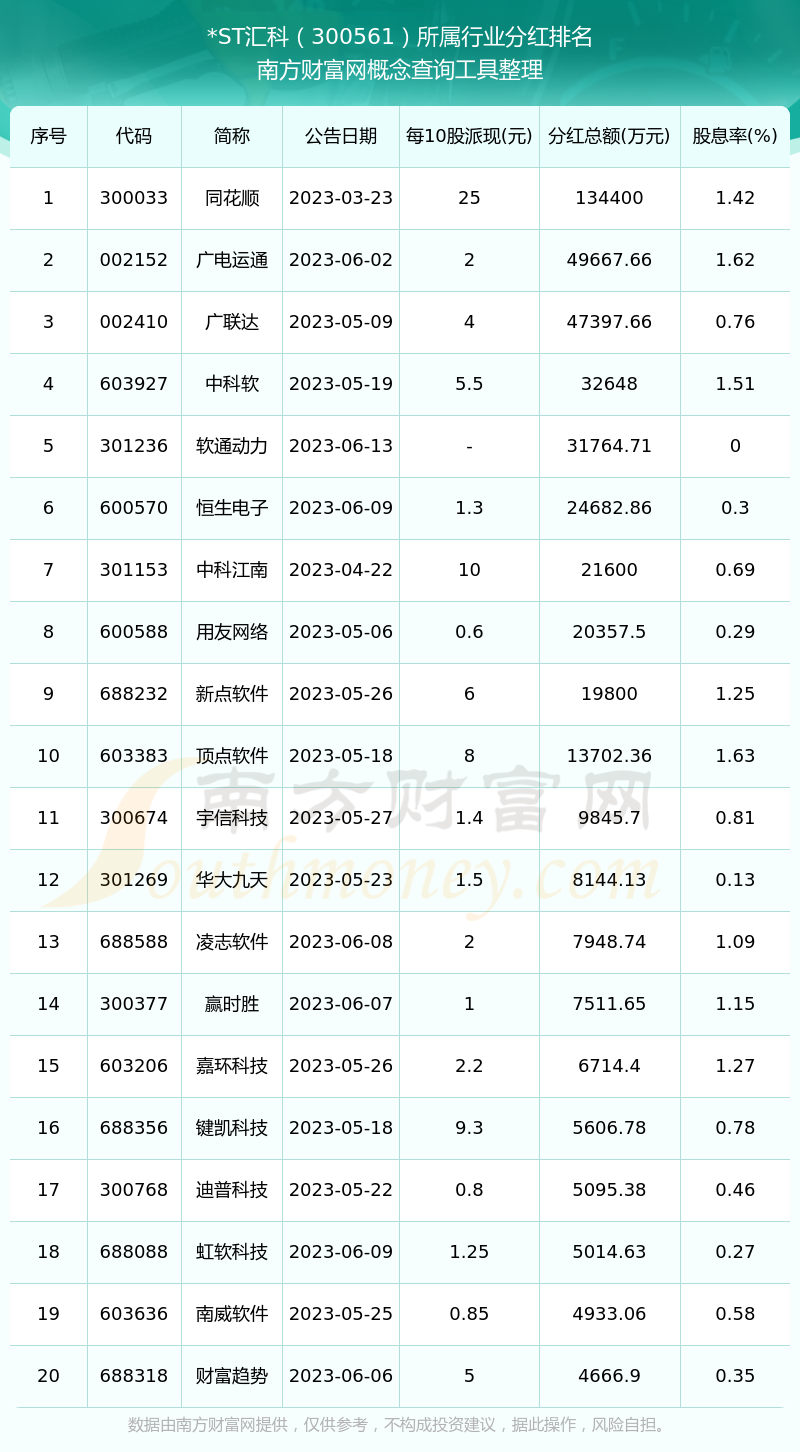 二、*ST匯科300561行業(yè)分紅排名