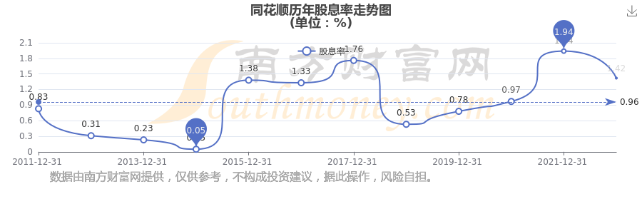 近年同花順年度股息率走勢(shì)如下圖: